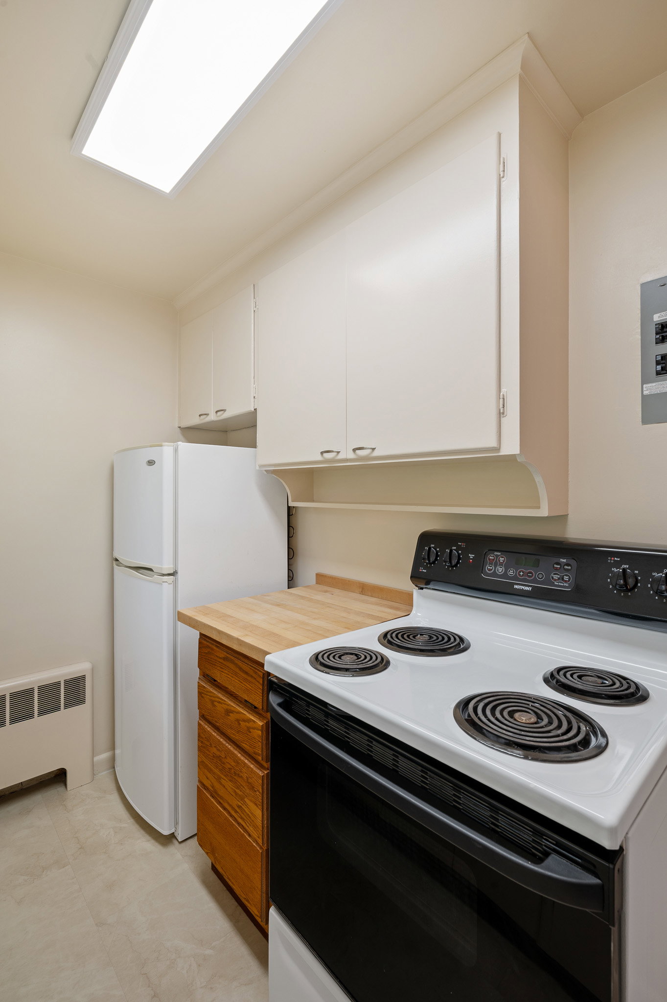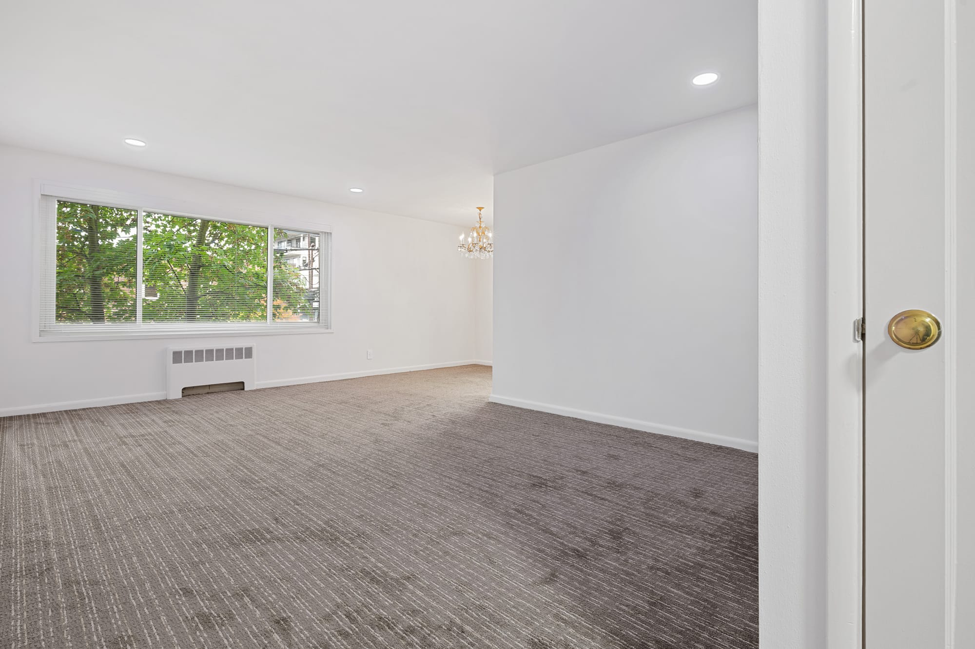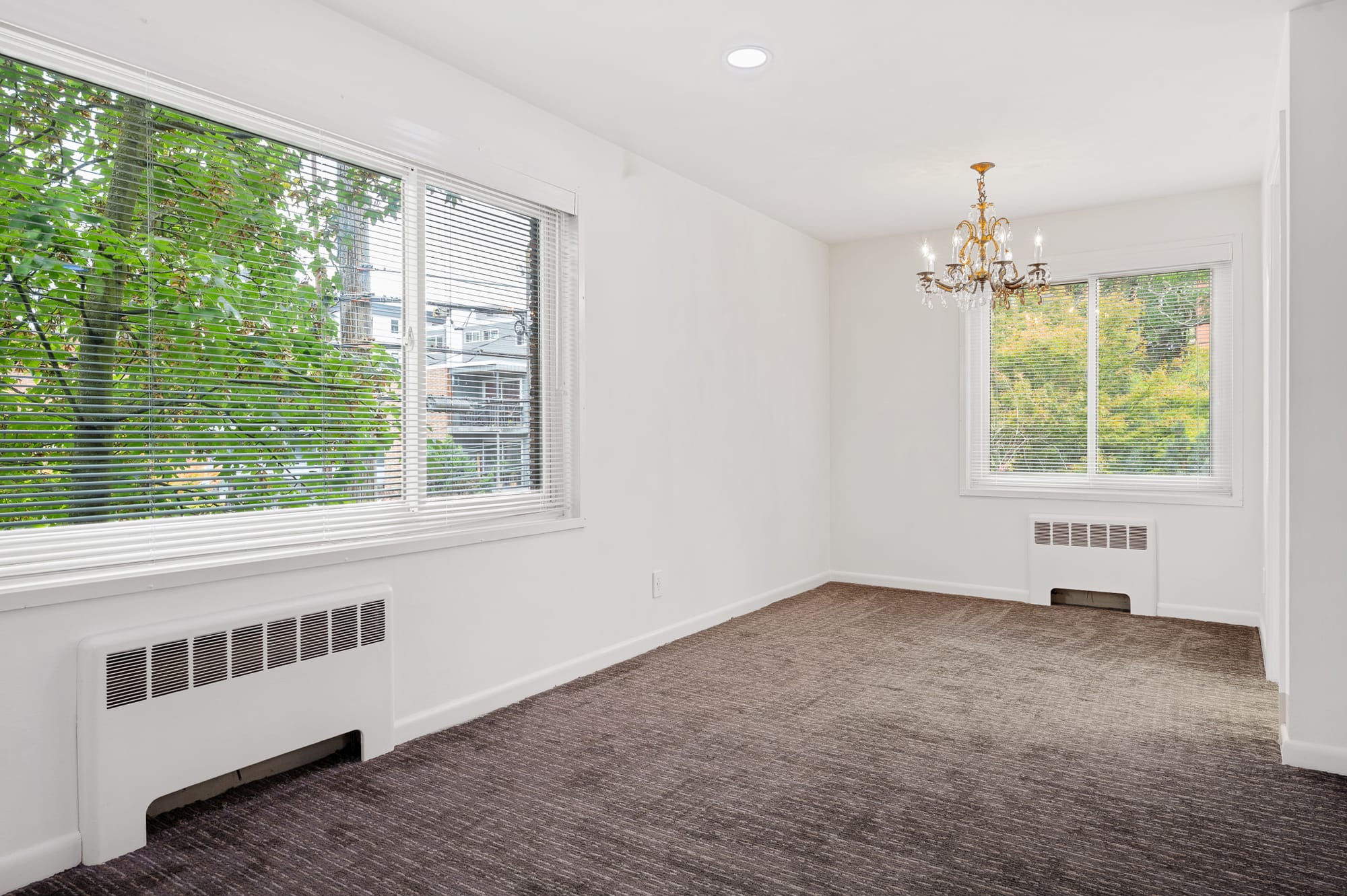 This large corner apartment is located on the 3rd floor of a 4-floor building, on the Northwest side of the building, with plenty of natural light and quiet.